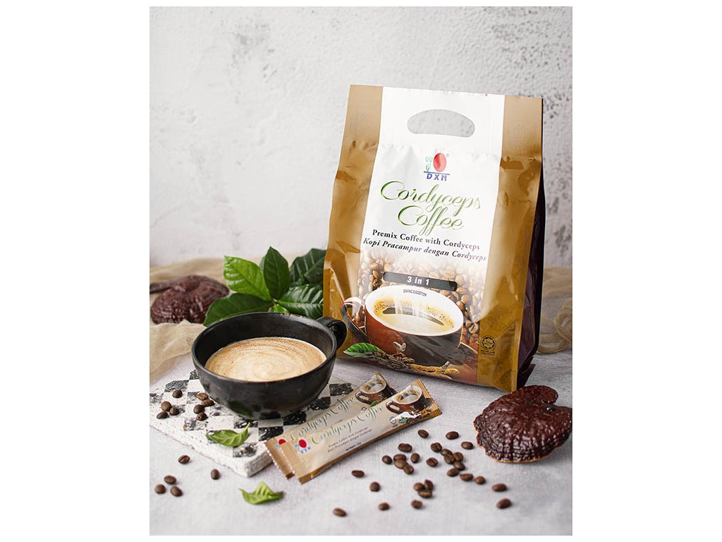 Tento instantný nápoj obsahuje kávu arabicu, trstinový cukor, rastlinnú smotanu a extrakt z huby Cordyceps sinensis, ktorý jej pridáva mnoho benefitov, vďaka svojim obsahovým látkam (viac info o Cordycepse TU). Káva je jemná, lahodná a príjemne povzbudí nie len vďaka obsahu kofeínu, ale aj účinku huby, ktorá stimuluje organizmus a povzbudzuje imunitu.