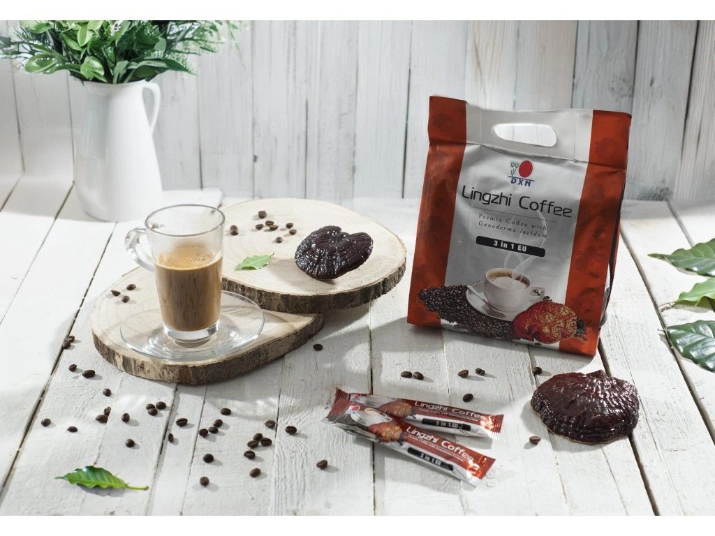 - Kombinácia kávy a Reishi: instantná káva s trstinovým cukrom, rastlinnou smotanou a extraktom z huby Reishi.